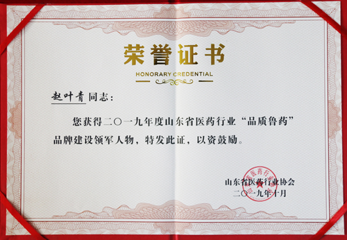 會議公布并表彰了山東省醫藥行業協會2019年度“品質魯藥”品牌建設綜合實力30強企業、領軍人物和優秀產品。金城醫藥集團董事長趙葉青當選2019“品質魯藥”品牌建設領軍人物,金城醫藥榮獲“品質魯藥”綜合實力30強企業”榮譽稱號。