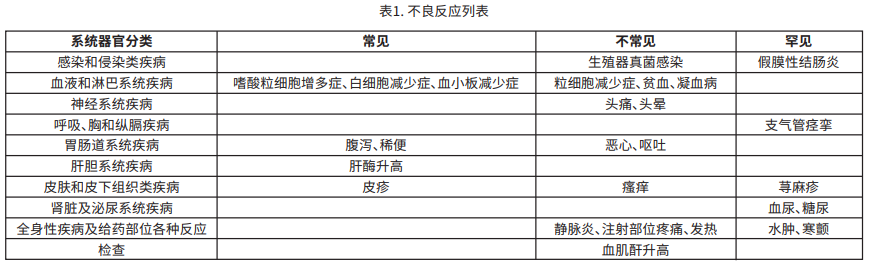 對頻率分類采用以下慣例:非常常見(≥1/10)、常見(≥1/100~<1/10)、不常見(≥1/1000~<1/100)、罕見(≥1/10000~<1/1000)